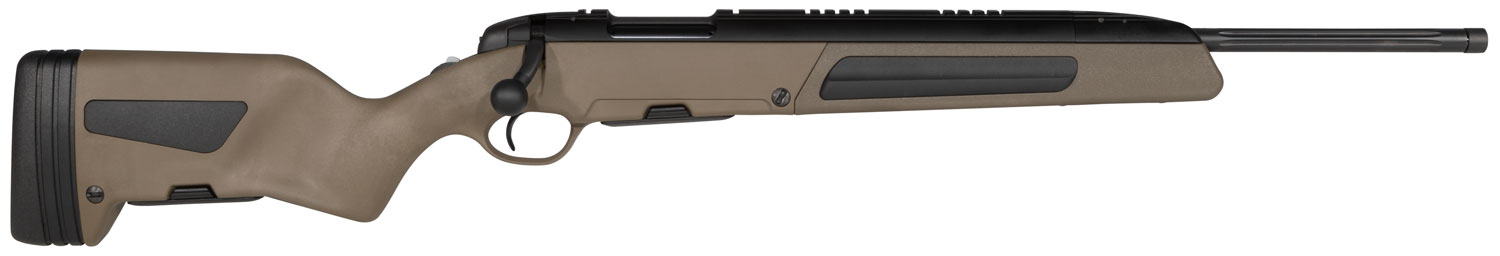The Steyr Scout provides the ideal solution for versatility, durability, accuracy and reliability in a compact and lightweight bolt-action rifle platform. Developed in collaboration with legendary Marine Corps Lt.Col. Jeff Cooper, the Scout boasts an extensive list of innovative features. With a fluted, and a cold-hammer-forged barrel measuring 19", the Scout is a breeze to pack out on long adventures. The compact design of the stock features an innovative integrated bipod legs with a UIT rail for attachments. The stock is outfitted with five press-and-twist sling-swivel attachment points. This rifle also features a green synthetic stock and it comes with two 5 rd magazines, with room in the buttstock to carry the additional magazine.| Action | Bolt |