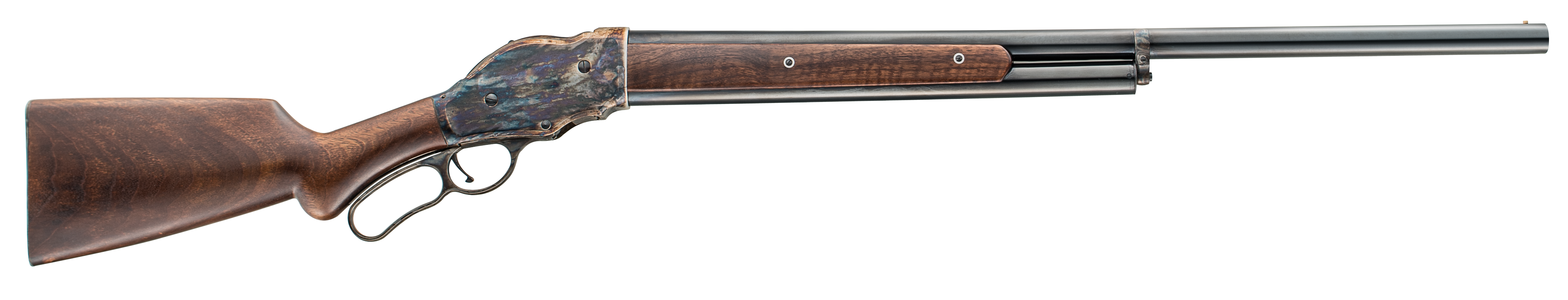 The 1887 lever action shotgun's design includes an innovative internal safety, a european walnut stock and forearm, blued barrel, and color case hardened receiver. The 1887 is as beautiful as it is functional. It comes with a bead front sight and three choke tubes.