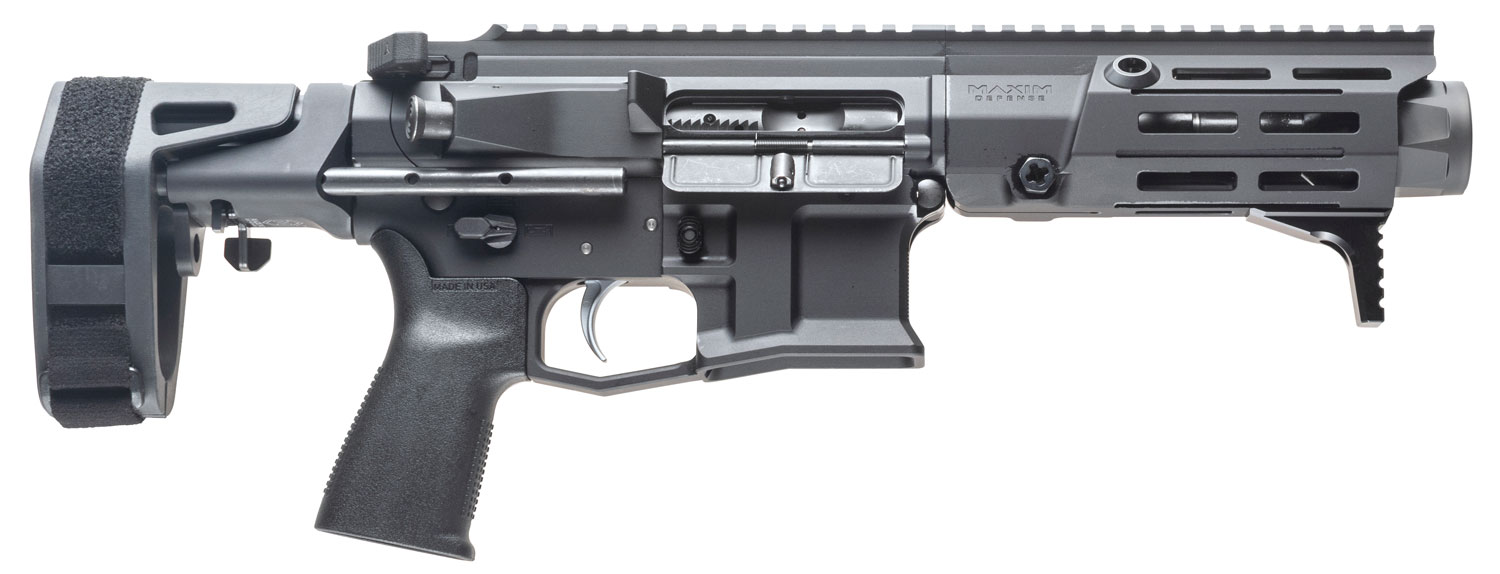 Born from the SOCOM PDW solicitation, the Maxim Defense PDX is designed to handle the fierce demands of the Tier 1 community. It dominates close quarter encounters and achieves maximum energy on target. At just 18.75" in overall length, the PDX delivers groundbreaking power and performance in a sub compact platform. At the heart is a patent-pending, Maxim SCW stock system. This system cuts down the length of the stock to 4". The integrated BCG with interchangeable buffer weights gives you maximum performance and versatility without sacrificing form and functionality. The PDX is also equipped with a Maxim Hate Brake muzzle booster which significantly reduces recoil, decreases the flash signature, pushes gasses and concussion wave downrange.| Type | AR Pistol |