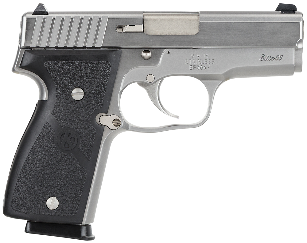 Kahr Arms K9098A K Elite 9mm Luger Caliber with 3.50" Barrel, 7+1 or 8+1 Capacity, Overall Polished Stainless Steel, Serrated Slide & Textured Wraparound Black Polymer Grip