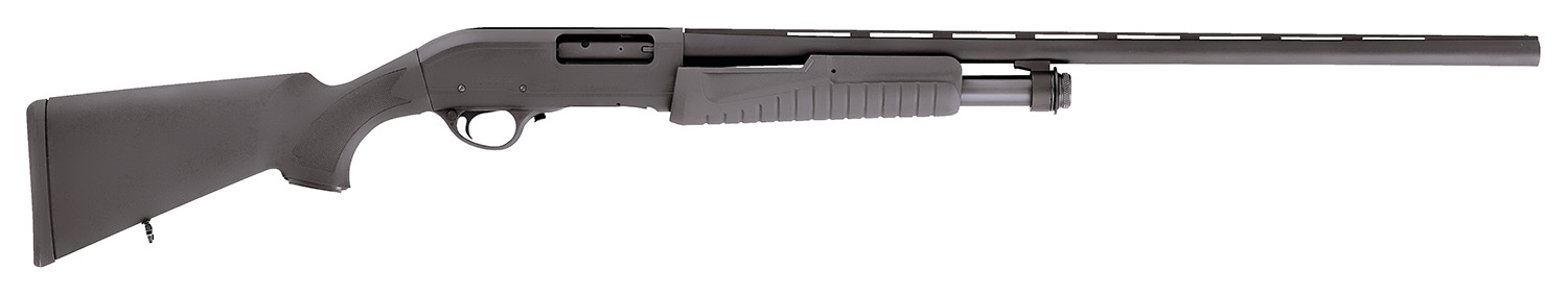 Escort's Field Hunter Turkey shotgun features flawless performance. It utilizes an alloy receiver with a Cantilever 5" Weaver optic rail, and windage/elevation adjustable green fiber optic rear sight. The stock is constructed of durable synthetic with checkered grip surfaces, rubber butt pad, and sling studs. The oxidation proof barrel is chrome plated and features a multi choke system with 3 included chokes (F,IM,EXT Turkey). The Field Hunter Turkey also uses windage adjustable red fiber optic front sight and manual cross-button trigger safety.| Action | Pump |