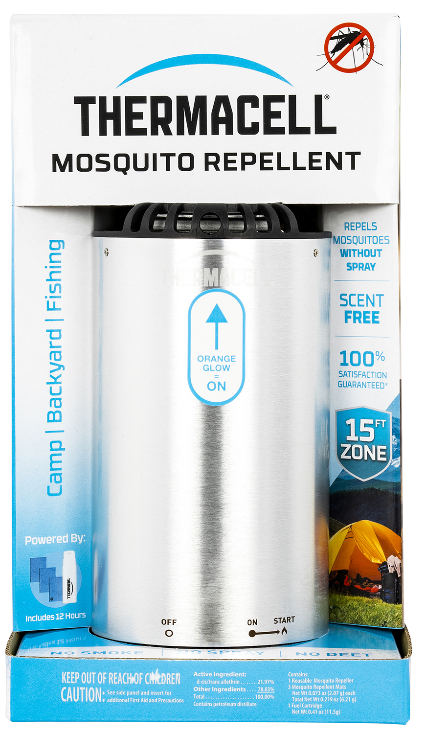 Thermacell MRME Camping Edition Mosquito Repeller Brushed Nickel Effective 15 ft Odorless Scent Repels Mosquito
