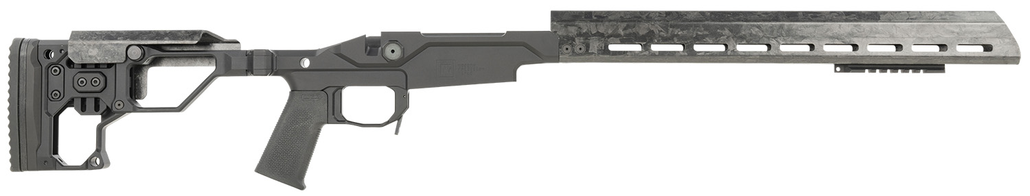Christensen Arms Modern Precision Rifle Chassis, Black, Short Action, 17" Handguard. The Christensen Arms Modern Precision Rifle Chassis is the same ultra-lightweight adjustable system found on the Modern Precision Rifle now offered as an individual component. Crafted from 7075 billet aluminum with carbon fiber components, this chassis system features Magnelock Technology and a 17" FFT carbon fiber handguard with M-Lok compatibility. With an adjustable cheek riser and length of pull, this chassis system is perfect to start your next MPR workbench project.