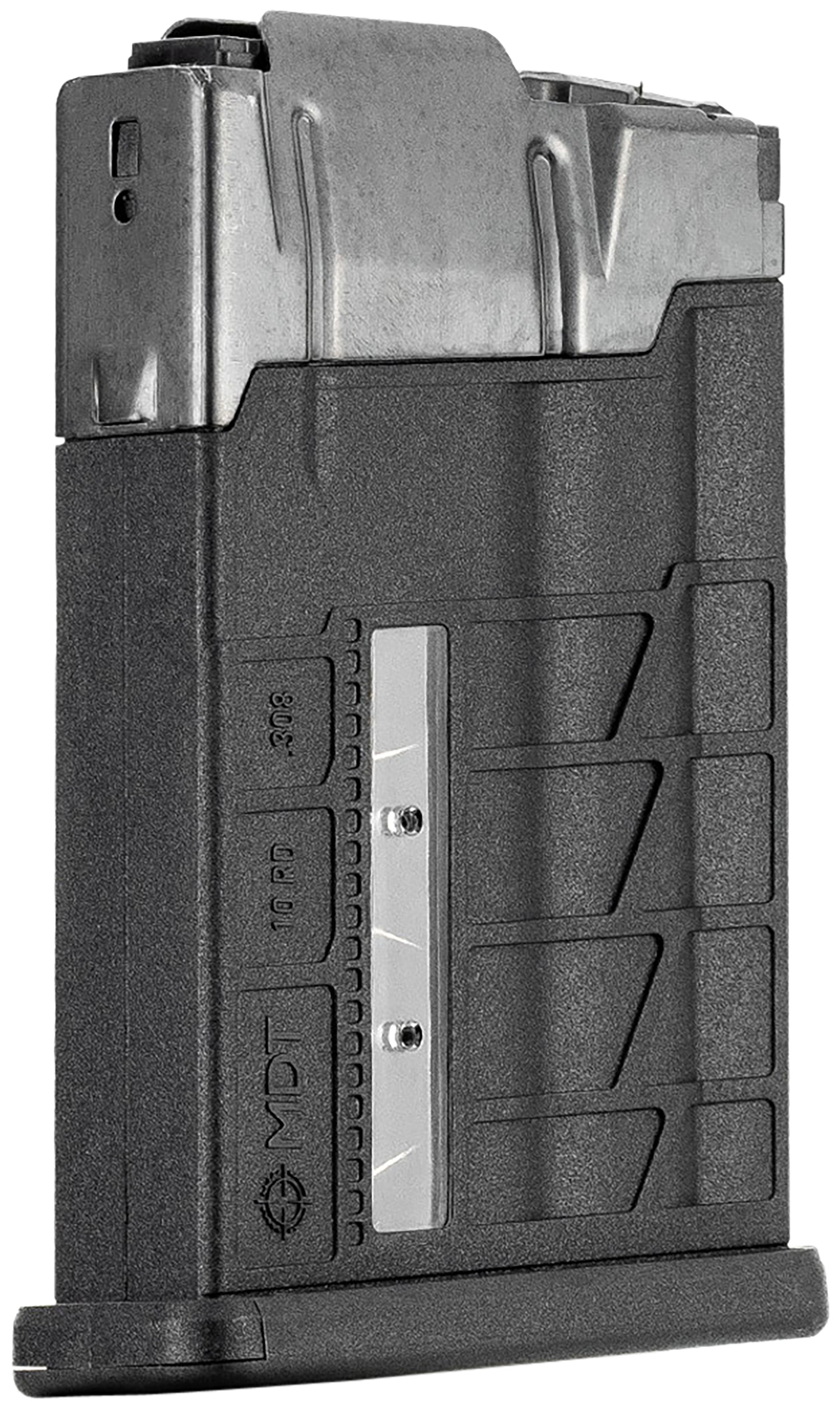 COMPATIBILITY: 308 WIN, 243 WIN, 7mm-08 WIN, 6mm Creedmoor, 6.5 Creedmoor, 260 REM, 22-250 REM (With reduced capacity), 308/7.62x51 NATO, 6mm XC. The MDT Poly/Metal Magazines are an advancement of the tried and true AICS pattern magazine. The combined polymer and steel magazine make for a unique, lightweight, slick feeding magazine. The body is made from high-strength polymer and features a clear window in the sides of the body to easily view loaded rounds. The Polymetal design features steel feed lips that are mated to the polymer body to ensure smooth, reliable feeding in your rifle. The metal feedlip assembly contains the latching boss, significantly increasing the durability compared to a polymer equivalent. The metal feed lips can also be easily adjusted or tuned to improve performance with other cartridges.