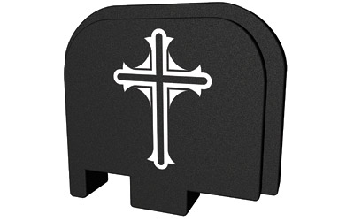 Bastion Slide Back Plate, Cross, Black and White, Fits Glock 43 BASGL-043-BW-CRUCFX