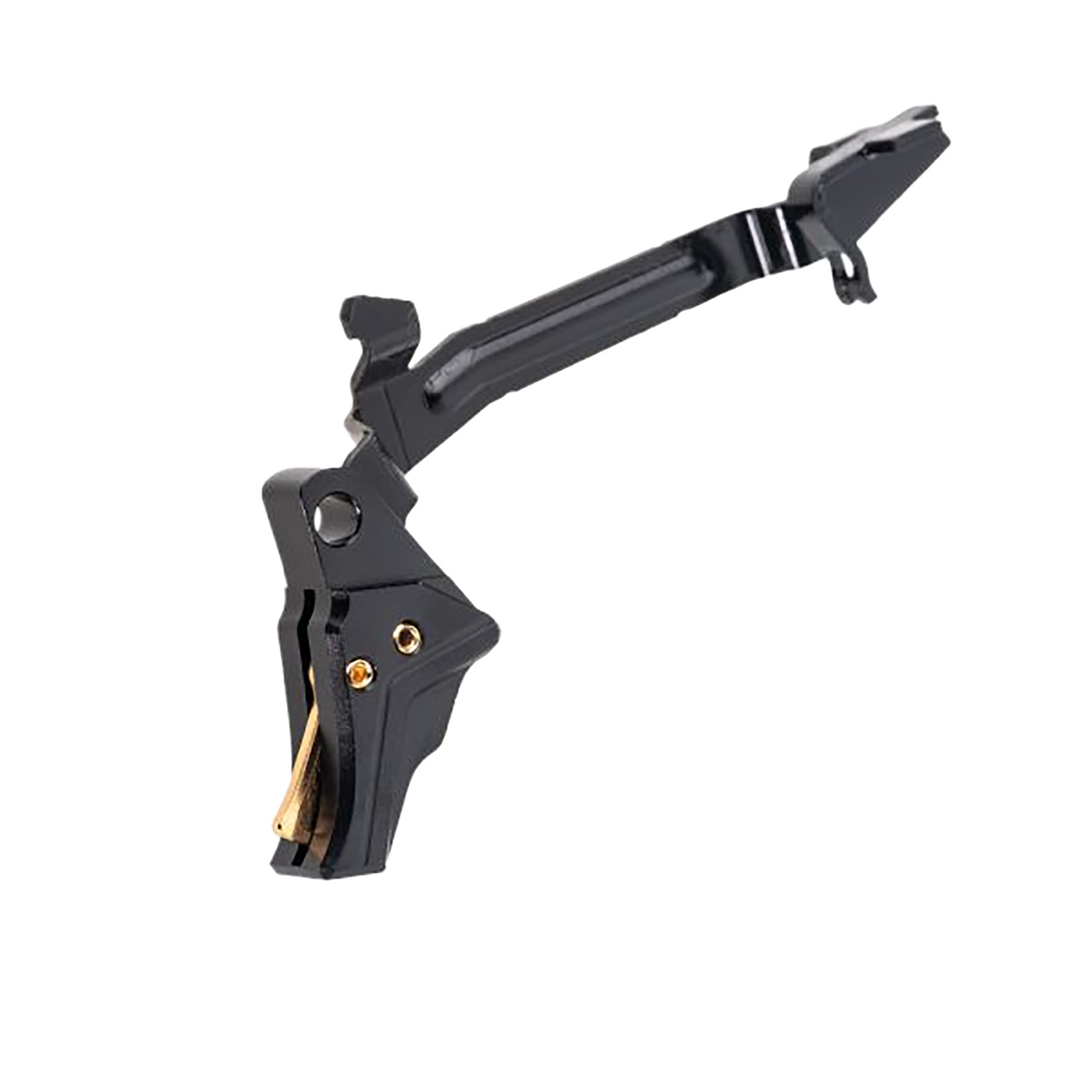 Tyrant CNC Improved Tyrant Trigger System, Fits Glock Gen 3/4, Anodized Finish, Black Body with Gold Safety Blade TD-GTRIG-3-4-BLACK-GOLD-BAR