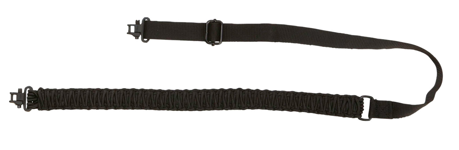 Tac Six 8913 Paraflex Sling made of Black Elastic with 30"-40" OAL, 1.25" W, Paracord Design & 2 Swivels for Rifle/Shotgun