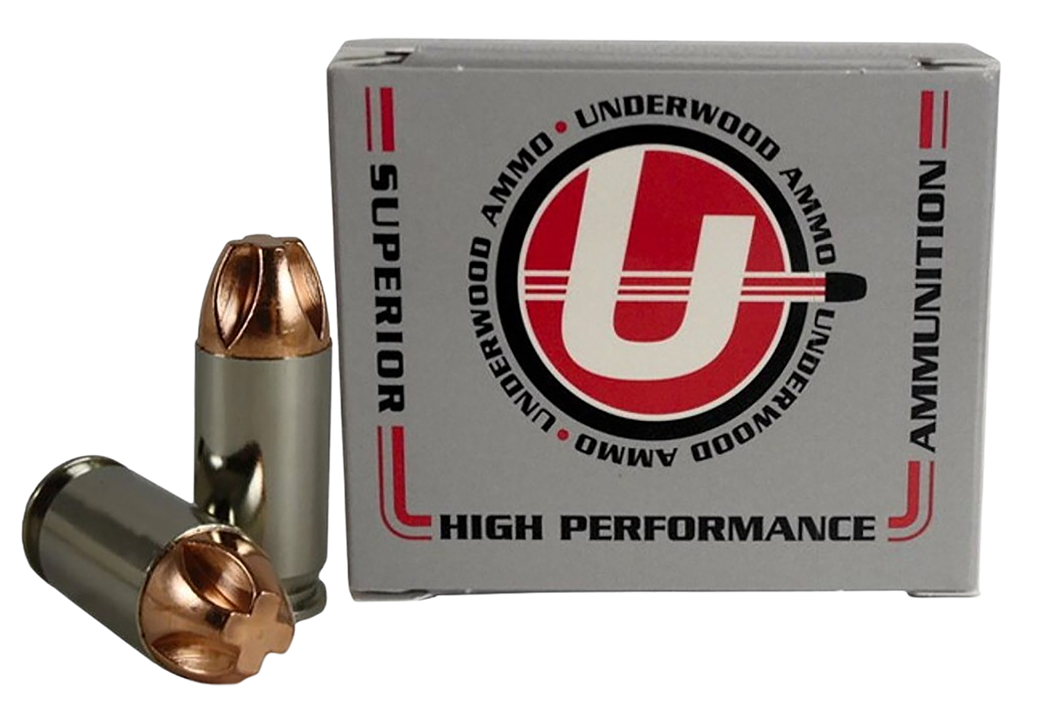 Underwood Ammo™ combines our trademark power and precision with Lehigh Defense masterfully designed Xtreme Penetrator bullets - the result is one jaw dropping round. This round is solid copper and features a unique nose that maximizes penetration and facilitates consistent and reliable magazine feeding. This round offers: Solid Copper (Lead Free) precision CNC machined design. Good for the environment, bad, really bad for the target Unique nose that increases the hydraulic velocity creating high pressure spikes resulting in a larger permanent wound column and over twice the penetration than most expanding bullets. Blunt nose for initial energy transfer and straight, deep penetration while allowing for reliable magazine feeding. Solid copper construction and cutting edges to punch through entry barriers without deformation or deflection. As with all of Underwood Ammo™ rounds, we utilize flash suppressed powder so that your vision will not be compromised if it becomes necessary to use your firearm in low light. This ammo is for cartridge size .45 ACP +P. The bullet is made from Copper. The diameter (caliber) of this bullet is 0.452. This bullet weighs 200 grains. This bullet leaves the barrel at 1000 feet per second. The ammo case is made from Nickel Plated Brass. This ammo is a proven round for hunting. The bullet in this product does NOT contain lead. This round is designed to be subsonic and travels slower than the speed of sound. The muzzle energy of this ammo is 444 ft lbs. This product has been designed to be an effective choice for the ultimate in self-defense applications. The bullet in this product has a Sectional Density, (SD) of 0.139847622031035. SD is the ratio of an object's mass to its cross sectional area with respect to a given axis. It conveys how well an object's mass is distributed (by its shape) to overcome resistance along that axis. This ammo IS SAFE to use in a suppressor. The bullet in this ammo has a ballistic coefficient (G1) of - Generally, the higher the coefficient, the more stable the projectile will be in flight. Each box of ammo contains 20 loaded pieces of ammunition. This ammo is manufactured by Underwood Ammo As with all of Underwood Ammo™ rounds, we utilize flash suppressed powder so that your vision is not compromised if it becomes necessary to use your firearm in low light. While taking advantage of our state of the art testing equipment, this high-performance ammunition is field tested using popular, real firearms that our customers are most likely to own out in the real world with all the elements you would experience. This ammunition is new production, non-corrosive, in boxer primed, reloadable brass cases. Technical Information: SKU : 646 Cartridge : .45 ACP +P Bullet Brand : Lehigh Defense™ Bullet Weight (gr) : 200 Bullet Construction : Solid Monolithic Bullet Model : Xtreme Penetrator® Bullet Material : Copper Case Type : Nickel Plated Brass Supressor Safe : Yes Ballistics Information: Muzzle Energy (ft. lbs) : 444 Muzzle Velocity (fps) : 1,000 Sectional Density : 0.140